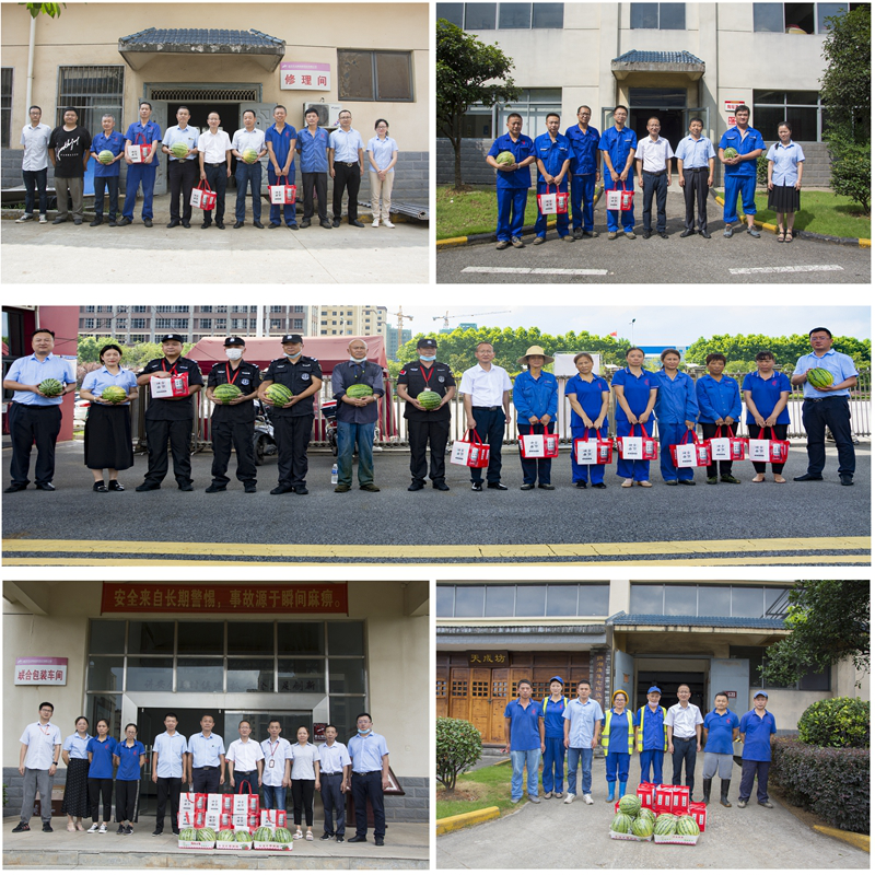 活動中,謝毅一行前往釀造、包裝、勾儲、后勤等一線部門,向工作在一線的員工送去西瓜、古樂神曲等防暑降溫物品,并叮囑他們要加強自身防護,做好防暑降溫工作,確保人身安全、生產安全。