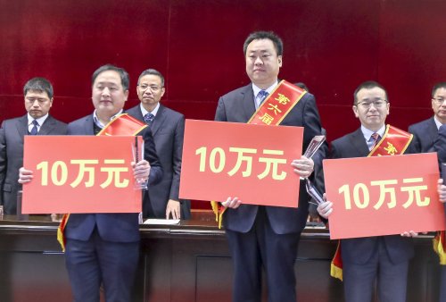 咸寧市政府連續(xù)六年以高規(guī)格會(huì)議頒發(fā)市政府質(zhì)量獎(jiǎng)、湖北名牌產(chǎn)品等獎(jiǎng)項(xiàng)。本次會(huì)議對(duì)榮獲“第六屆咸寧市政府質(zhì)量獎(jiǎng)”的天龍黃鶴樓酒業(yè)咸寧有限公司、湖北黃袍山綠色產(chǎn)品有限公司、穩(wěn)健醫(yī)療(嘉魚)有限公司3家企業(yè)頒發(fā)獎(jiǎng)杯并分別獎(jiǎng)勵(lì)人民幣10萬元。