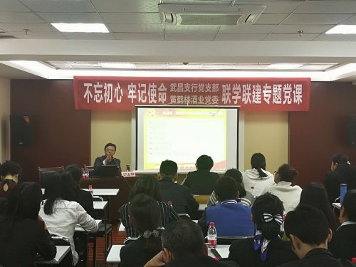 11月7日,交通銀行武昌支行黨支部與黃鶴樓酒業(yè)黨委開展了“不忘初心 牢記使命”聯(lián)學(xué)聯(lián)建專題黨課,黨課在武昌中南路交通銀行七樓會(huì)議室進(jìn)行,黃鶴樓酒業(yè)黨委副書記、副總經(jīng)理麻玉俠,黨委組織委員許鳳娥,交通銀行武昌支行行長曹蔚云參加黨課學(xué)習(xí)。