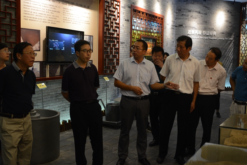 王述華一行在講解員的帶領下參觀了景區(qū)的商貿(mào)中心、黃鶴樓酒文化館、美酒銀行、酒香花果山等景點。在黃鶴樓酒文化館,李良詳細介紹了黃鶴樓酒的制曲工藝、五糧配比。