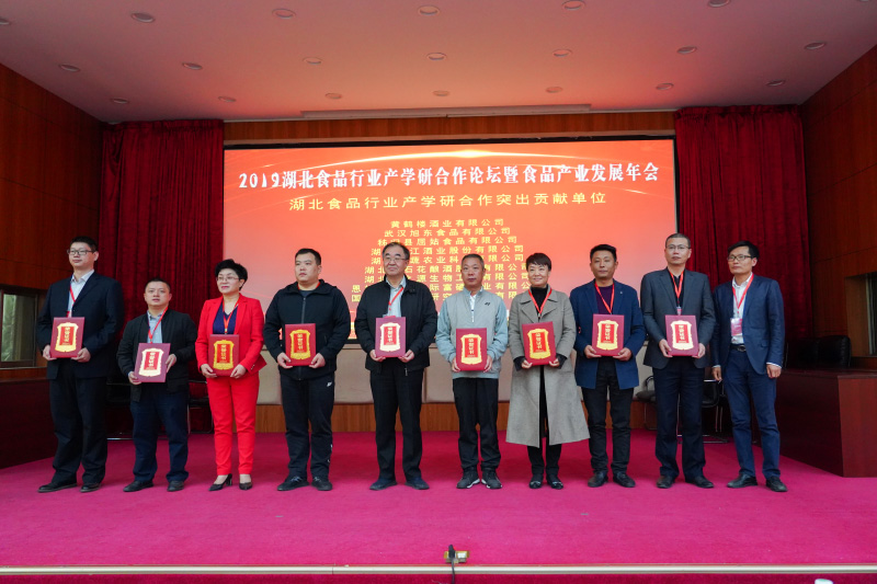 11月14日,2019湖北食品行業產學研合作論壇暨食品產業發展年會在湖北工業大學召開。湖北省政協副主席郭躍進,湖北省經濟和信息化廳副廳長郭濤,湖北省社會組織總會會長文增顯、湖北省食品工業協會秘書長譚衛東、湖北工業大學校長劉德富出席會議。黃鶴樓酒業總經理助理魏國受邀參加會議。