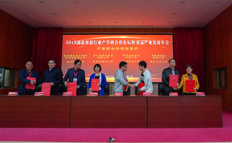 各代表企業與高校分享了產學研合作經驗與科研成果后,會議舉行合作項目簽約儀式。黃鶴樓酒業咸寧分廠廠長李良代表公司與湖北工業大學簽署合作協議。