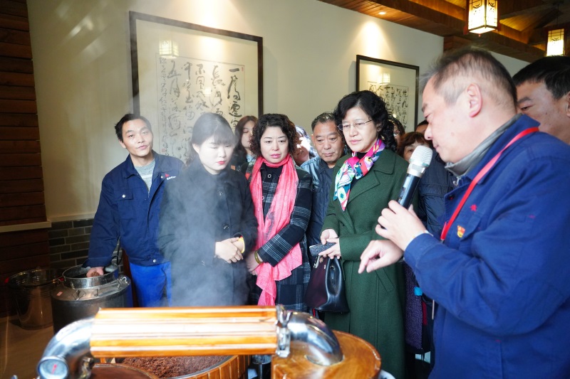 張燕婷一行參觀了黃鶴樓酒文化博覽園,了解了黃鶴樓酒的歷史源流、釀造工藝與品牌文化。