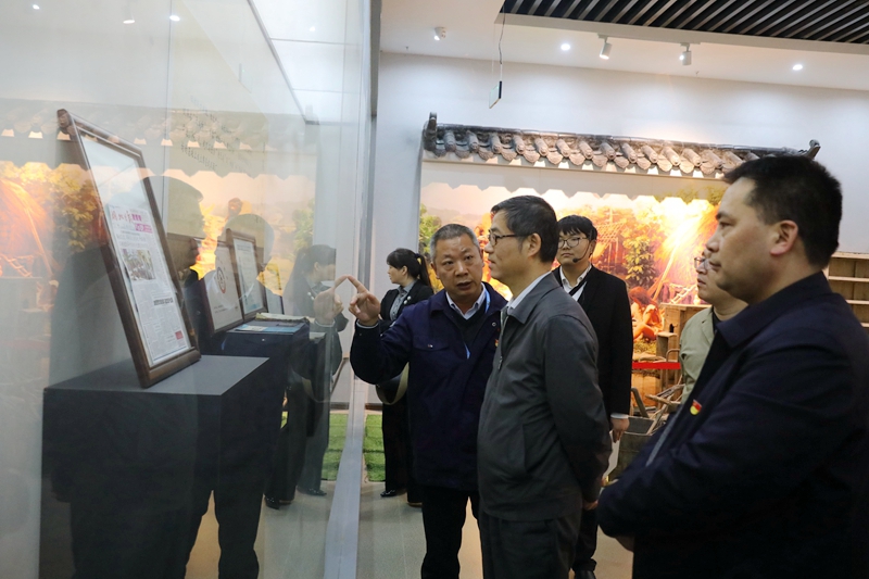在黨建文化館,朱向紅為王有軍一行介紹了從中共一大到十九大時(shí)期內(nèi)的重大歷史事件,講述中國(guó)共產(chǎn)黨不忘初心、矢志不渝,為實(shí)現(xiàn)中華民族偉大復(fù)興的奮斗歷程。朱向紅表示,黃鶴樓酒業(yè)堅(jiān)持以黨建促發(fā)展,始終高舉旗幟、奮勇前進(jìn),做到黨建立企、黨建興企、黨建穩(wěn)企。