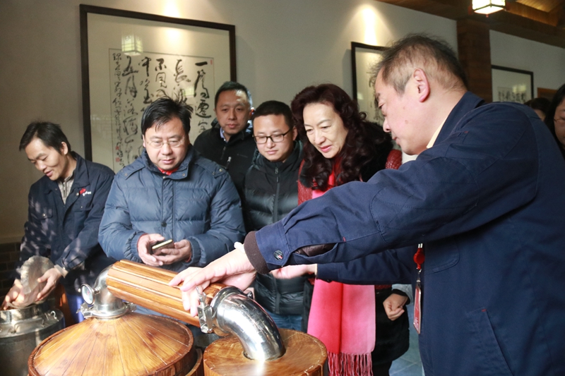 鄭慧麗一行參觀了天成坊釀造車間、名人酒窖、酒文化博物館、黨建文化館等地,詳細了解了黃鶴樓酒業的發展歷程與經營現狀。張瑞介紹到,黃鶴樓酒業武漢廠區占地百余畝,是集吃、住、游、娛、購于一體的AAA級旅游景區,他表示,黃鶴樓酒業“一樓三香”的產品體系與“一核兩翼”的市場格局,為黃鶴樓酒面向全國、走向世界奠定基礎。企業以黨建促發展,堅定政治站位與紅色引領,通過全方位的建設,打造成更具現代化的白酒企業。